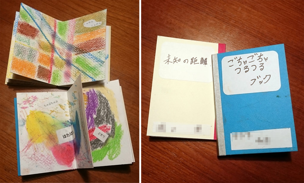 クレヨンの色々な使い方を試しならが書いた絵をみんなで「何に見えるか」と意見を交し合う所からはじめるので、何かプレゼン能力の訓練にも役に立つのでは?とも思いましたが、そうやって何枚も書いた絵を自分の絵本にしていきました。